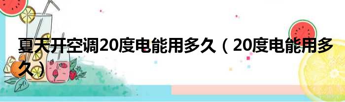 大家好,啊来为大家解答以上的问题。夏天开空调20度电能用多久,20度电能用多久这个很多人还不知道,现在让我们一起来看看吧!