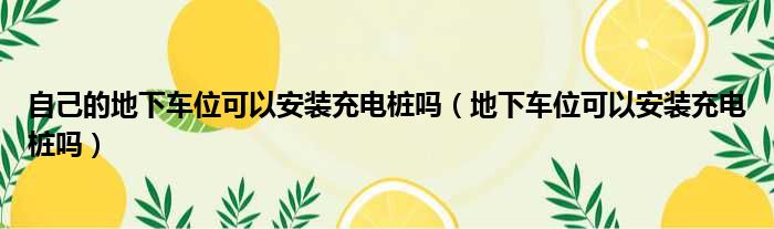 自己的地下车位可以安装充电桩吗(地下车位可以安装充电桩吗)