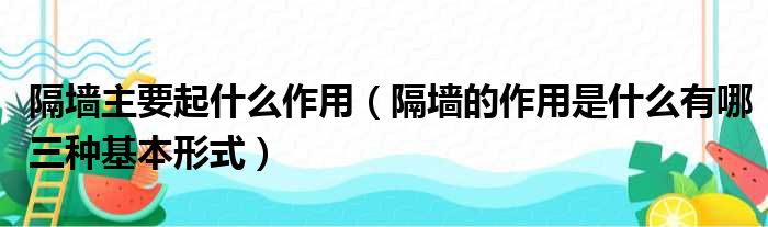 隔墙主要起什么作用(隔墙的作用是什么有哪三种基本形式)