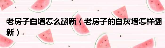 老房子白墙怎么翻新(老房子的白灰墙怎样翻新)