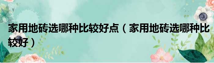 家用地砖选哪种比较好点(家用地砖选哪种比较好)