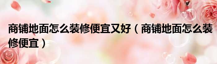 商铺地面怎么装修便宜又好(商铺地面怎么装修便宜)