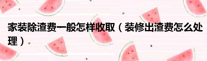 家装除渣费一般怎样收取(装修出渣费怎么处理)