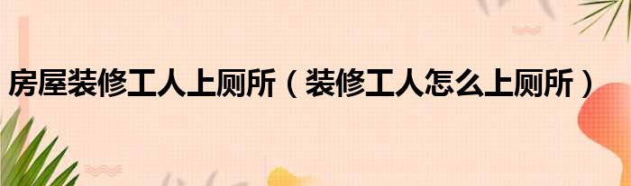 房屋装修工人上厕所(装修工人怎么上厕所)