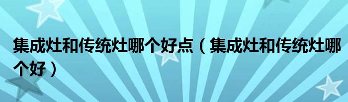集成灶和传统灶哪个好点(集成灶和传统灶哪个好)