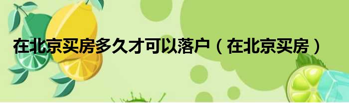 在北京买房多久才可以落户(在北京买房)